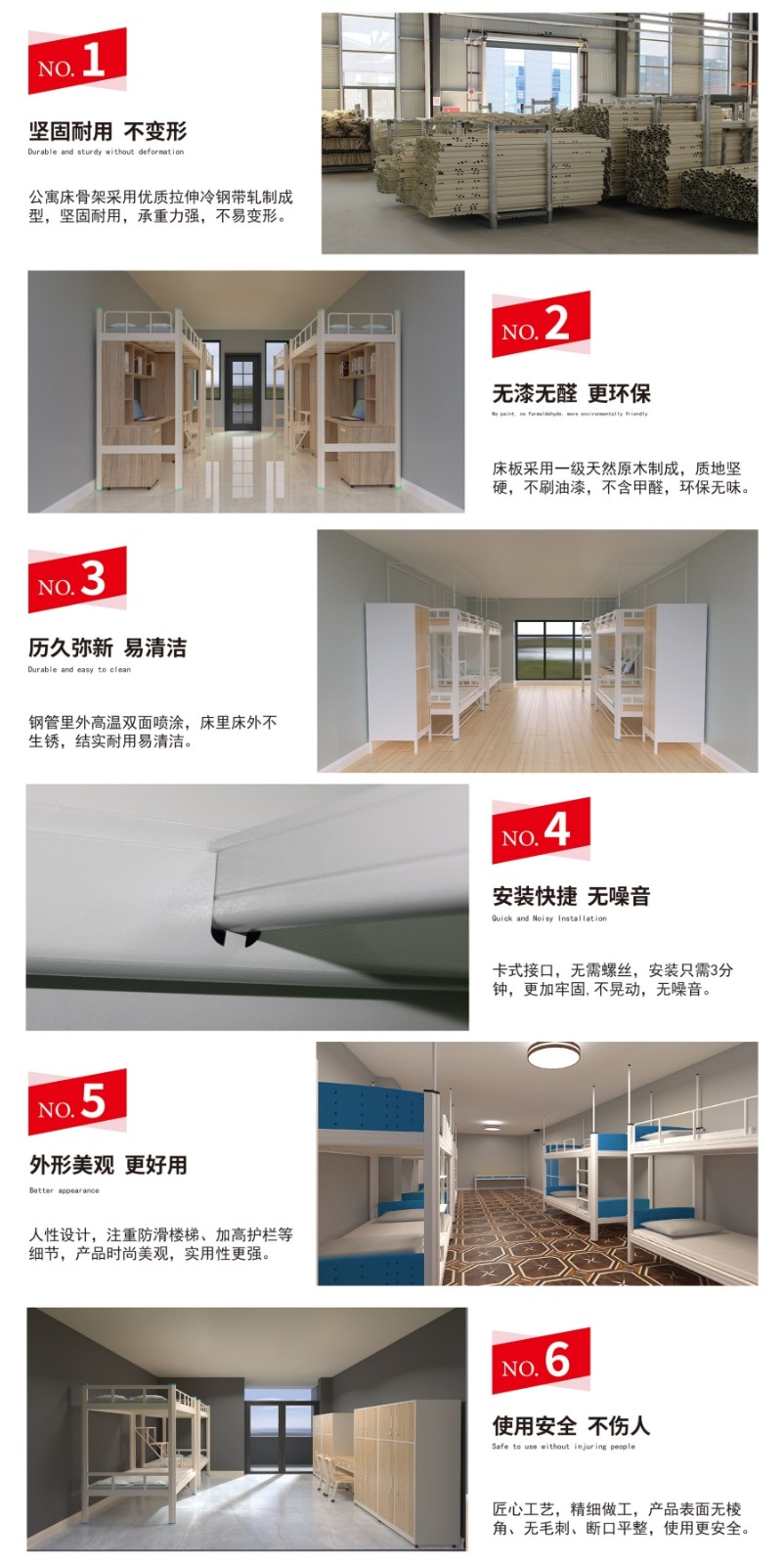 • 使用范围:学校、工厂宿舍、公寓、酒店、政企等各类宿舍家具定制
